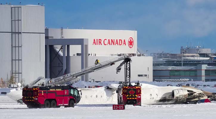 অনলাইন ডেস্ক: টরন্টো পিয়ারসন আন্তর্জাতিক বিমানবন্দরে ডেল্টা এয়ার লাইন্সের একটি আঞ্চলিক জেট বিমান অবতরণের সময় দুর্ঘটনায় পড়ে উল্টে যায়। এতে কমপক্ষে ১৮ জন আহত হয়েছেন, তবে সৌভাগ্যবশত সবাই বেঁচে গেছেন।বিমান সংস্থার প্রধান নির্বাহী ডেবোরা ফ্লিন্ট বলেছেন, আমরা খুবই কৃতজ্ঞ যে এই দুর্ঘটনায় কেউ মারা যায়নি এবং আহতরা তুলনামূলকভাবে কম গুরুতর আঘাত পেয়েছেন। দেশটির জরুরি সেবা দানকারী সংস্থাগুলো জানিয়েছে, দুর্ঘটনায় একজন শিশু এবং দুই প্রাপ্তবয়স্ক গুরুতর আহত হয়েছেন। সামাজিক যোগাযোগমাধ্যমে শেয়ার করা ছবিগুলোতে দেখা গেছে, বিমানটি উল্টে গিয়ে বরফে ঢাকা রানওয়েতে পড়ে আছে এবং এর অন্তত একটি ডানা ভেঙে গেছে।