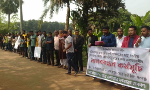 শনিবার (২৩ নভেম্বর) সকাল ১১টার সময় চরমেগচামী থেকে যাদবপুর রাস্তার চরমেগচামী মোড়ের ফ্যাক্টরি এলাকায় এ মানববন্ধন অনুষ্ঠিত হয়।