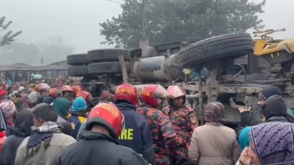 রাজশাহী: নতুন বছরের প্রথম দিনই রাজশাহীর পুঠিয়া উপজেলার ঝলমলিয়া কলাহাট এলাকায় ট্রাক উল্টে চারজন নিহত হয়েছেন। এতে আহত হয়েছেন আরও একজন। বিষয়টি নিশ্চিত করে পুঠিয়া ফায়ার সার্ভিসের ওয়্যারহাউজ ইন্সপেক্টর সারোয়ার হোসাইন জানান, বৃহস্পতিবার (১ জানুয়ারি) সকাল ৭টা ৫০ মিনিটের দিকে ঘন কুয়াশার কারণে মহাসড়কের পাশে ঝলমলিয়া কলাহাট এলাকায় বালুভর্তি একটি ট্রাক উল্টে যায়। এতে ট্রাকটির নিচে চাপা পড়ে ঘটনাস্থলেই চারজন নিহত হন।