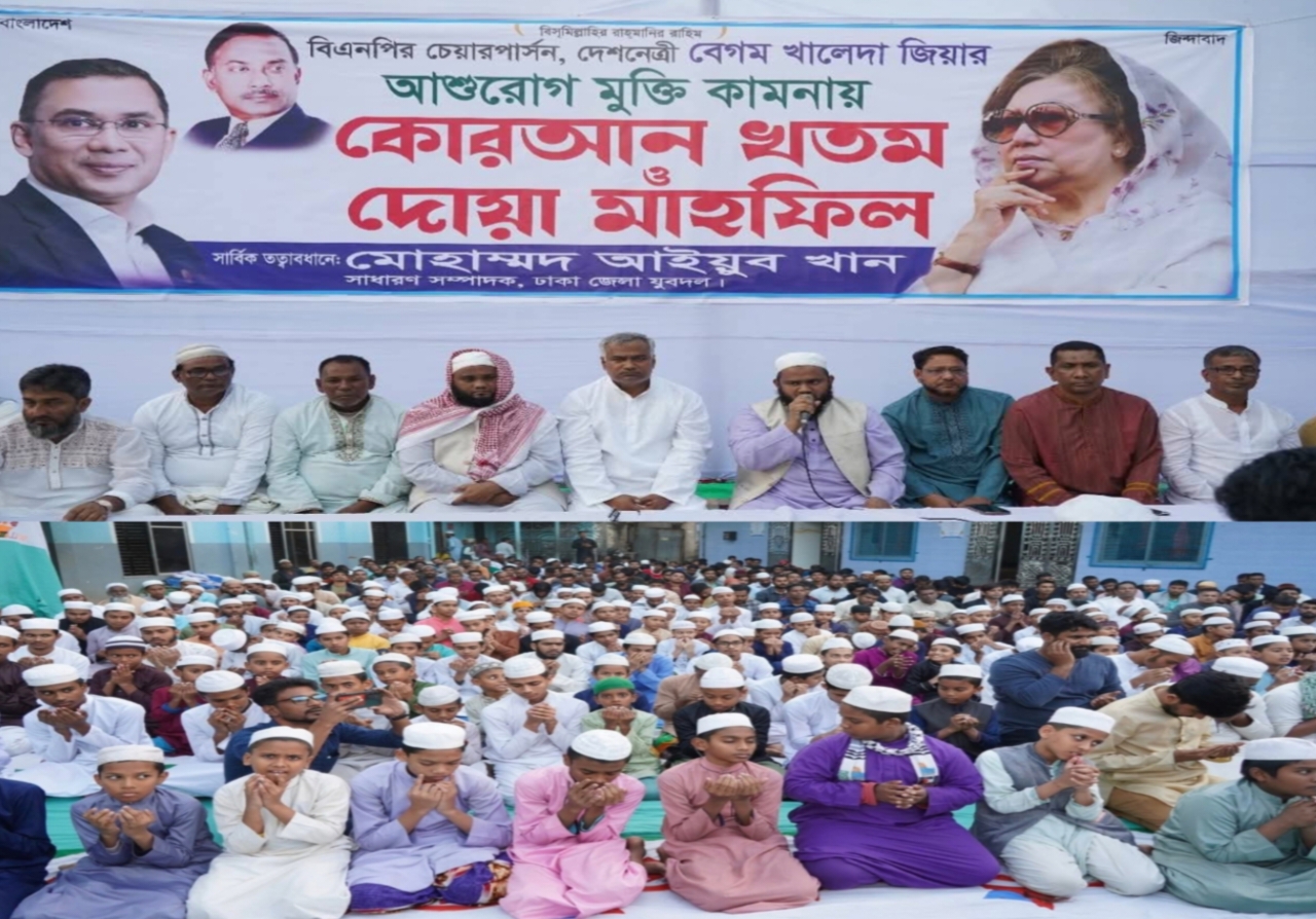 আশুলিয়ায় বিএনপি চেয়ারপারসনের আশু রোগমুক্তি ও সুস্থতা কামনায় দোয়া মাহফিল অনুষ্ঠিত
