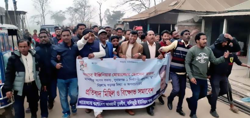 সুনামগঞ্জে এমপির বিরুদ্ধে মামলা ও অপপ্রচার প্রতিবাদে যুবলীগের বিক্ষোভ মিছিল