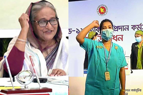 ঢাকা।। অবশেষে বহুল প্রতীক্ষিত করোনা ভাইরাসের টিকাদান কার্যক্রম শুরু হলো। এসময় যারা টিকা নিতে এসেছেন তাদের হাসিমুখে অভয় দেন প্রধানমন্ত্রী শেখ হাসিনা। নিজেও টিকা নেওয়ার আগ্রহ প্রকাশ করেন। তার আগে সকলের জন্য টিকা দেওয়ার কথা বলেন প্রধানমন্ত্রী।