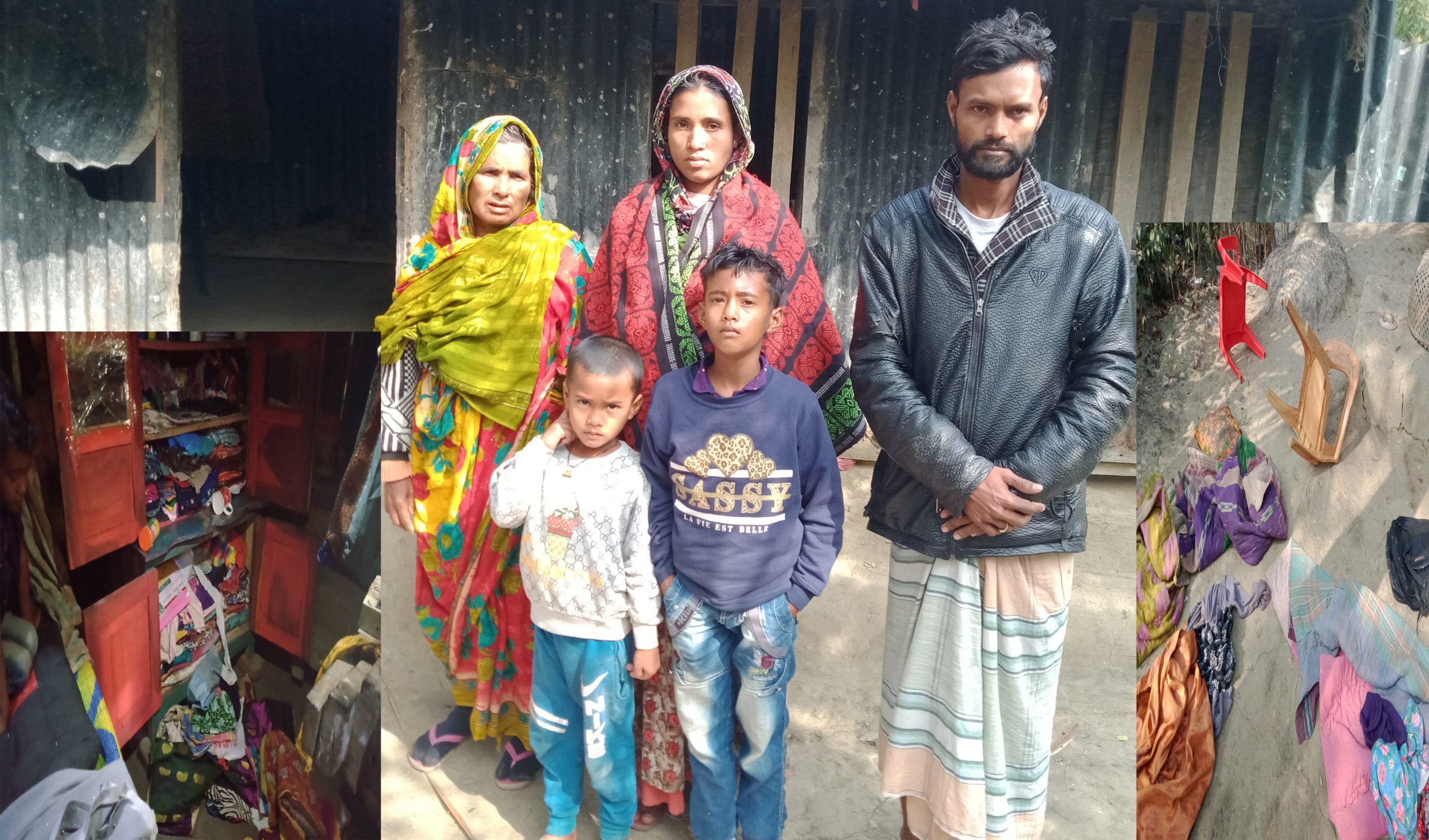 তারা আরও অভিযোগ করেন, ঘরে থাকা নগদ টাকা ৫৬ হাজার ৫২০ টাকা ও ৯০ হাজার টাকা মুল্যের স্বর্ণালঙ্কার লুট করে নিয়ে যায় এবং পরিবারের অধিকাংশ সদস্যদের বেধরক পিটিয়ে জখম করে এবং ঘর পুড়িয়ে দিবে বলে প্রান নাশের হুমকি দিয়ে চলে যায়। পরিবারটি জীবনের নিরাপত্তাহীনতায় ভুগছেন চাচ্ছে প্রশাসনিক সহযোগিতা।