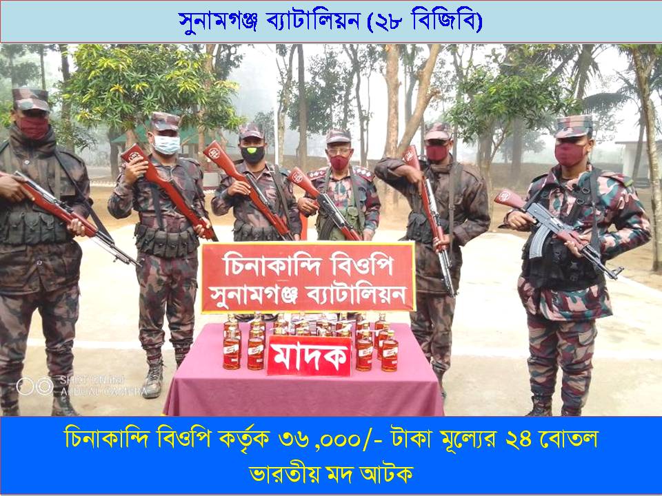 সুনামগঞ্জ-২৮ ব্যাটালিয়ন বিজিবি অধিনায়ক মো: মাকসুদুল আলম, পিবিজিএম এর সত্যতা নিশ্চিত করে বলেন, আটককৃত ভারতীয় মদ ও ইয়াবা মাদকদ্রব্য নিয়ন্ত্রণ কার্যালয় এবং নাসির বিড়ি ও Move ক্রিম শুল্ক কার্যালয়, সুনামগঞ্জে জমা করার কার্যক্রম প্রক্রিয়াধীন রয়েছে।