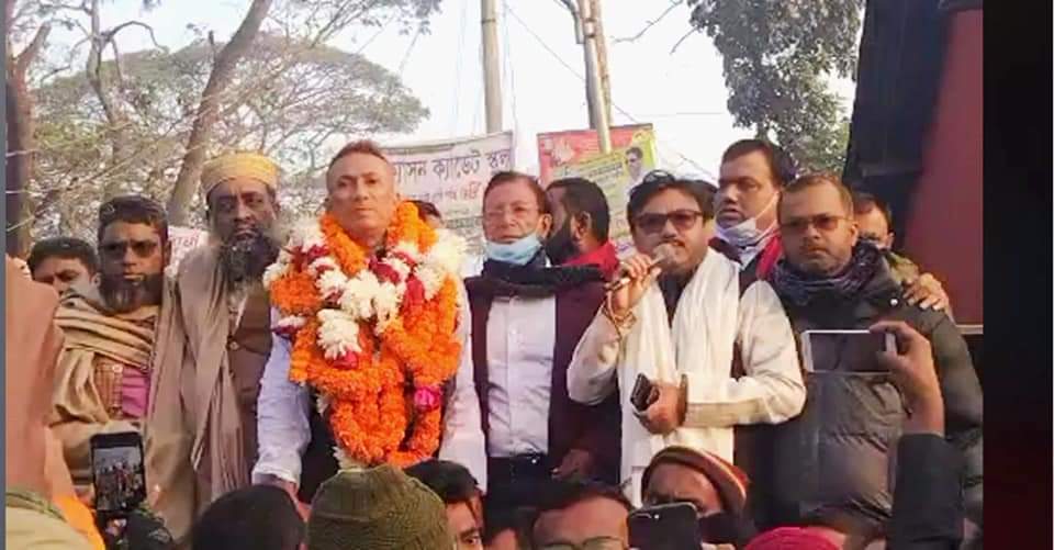 উপজেলা আওয়ামীলীগের দলিয় কার্যালয়ে আসার পর নেতা কর্মীদের ফুলেল শুভেচ্ছায় অভিসিক্ত মেয়র প্রার্থী মোরশেদ৷