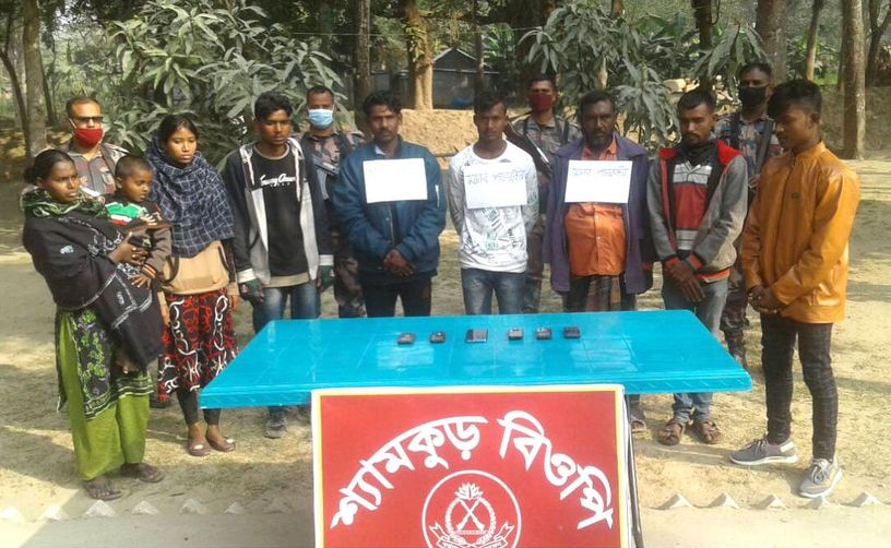 শনিবার ভোররাতে মহেশপুর উপজেলার একাশিপাড়া গ্রামের মাঠ থেকে তাদের আটক করা হয়। আটককৃতরা হলো-যশোরের ঝিকরগাছা উপজেলার রাজাপুর গ্রামের ইলিয়াছ শেখের ছেলে আসাদুজ্জামান (১৬), মৃত আবুল শেখের ছেলে সাগর শেখ (৩২), তার স্ত্রী জোসনা বেগম (২৫) ছেলে হাসান শেখ (৪), নওগার আত্রাই উপজেলার পৌসাত্ততা গ্রামের মৃত খাজাউদ্দিন প্রামানিকের ছেলে সাহাদত আলী (২৪) ও তার স্ত্রী ফামেতা জাহান শিউলী (১৯)।বিজিবি ৫৮ ব্যাটালিয়নের সহকারী পরিচালক মোহাম্মদ নজরুল ইসলাম খান জানান,গোপন সংবাদের তারা জানতে পারে মহেশপুর সীমান্ত দিয়ে কয়েকজন বাংলাদেশী ভারতে যাচ্ছে।