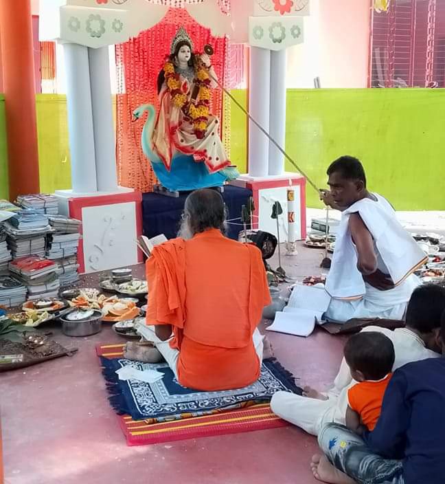 সকাল থেকে ঢাক-ঢোল-কাঁসর-শঙ্খ ও নারীদের উলুধ্বনিতে মুখরিত হয় ওঠে পূজামন্ডপ।প্রতিবছর শুল্ক পক্ষের পঞ্চমী তিথিতে শ্বেতশুভ্র কল্যাণময়ী বিদ্যাদেবী মা সরস্বতীর পূজা করা। আজ সকাল হতে উপবাস থেকে মন্ত্র উচ্চারণের মাধ্যমে ফুল, বেল পাতা ও দুর্বা দিয়ে পূষ্পাঞ্জলি দেয় বিদ্যাধিষ্ঠাত্রী মা সরস্বতীর চরণে।
