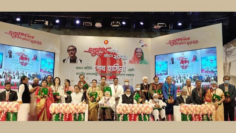 ঢাকা।। বিভিন্ন ক্ষেত্রে অবদানের জন্য ২১ জন বিশিষ্ট নাগরিক চলতি বছর (২০২১) একুশে পদক পেয়েছেন। শনিবার (২০ ফেব্রুয়ারি) রাজধানীর ওসমানী স্মৃতি মিলনায়তনে এই পদক তুলে দেয়া হয়। অনুষ্ঠানে প্রধানমন্ত্রী শেখ হাসিনা প্রধান অতিথি হিসেবে ভার্চুয়ালি যুক্ত ছিলেন।