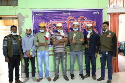 এসময় এসপি জাহিদুল ইসলাম সকল মাদক ব্যবসায়ীদের-কে ফুল দিয়ে বরণ করে নেন।