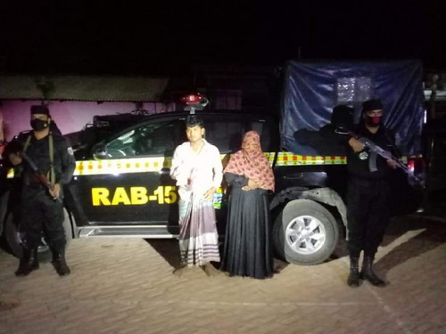আটককৃত,পালংখালী ফারির বিল এলাকার ফরিদ আহমদের পুত্র শহিদুল ইসলাম ও একই এলাকার ফরিদ আলমের স্ত্রী ছলেমা খাতুন।