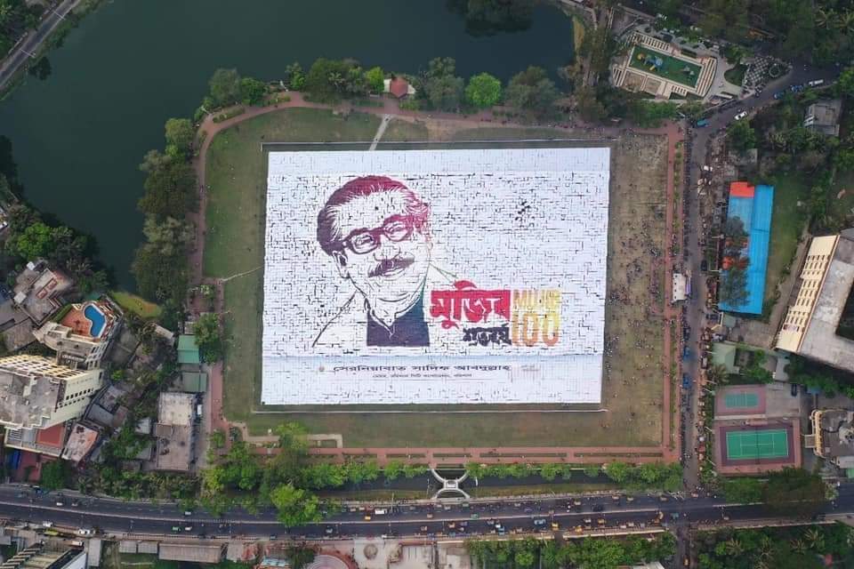 জানা গেছে, প্রায় ২ লাখ বর্গফুট আয়তনের ঐতিহ্যবাহী বঙ্গবন্ধু উদ্যানের ১ লাখ ৫৮ হাজার বর্গফুট জায়গা জুড়ে বঙ্গবন্ধুর সর্ববৃহৎ মানব লোগো প্রদর্শনীতে ৯ হাজার ৪০৮ জন মানুষ অংশ নিয়েছে।