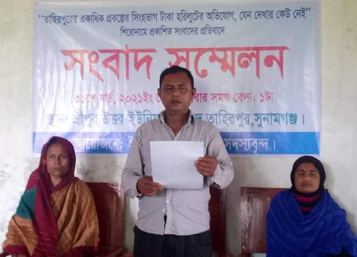 প্রতিনিধি সুনামগঞ্জ।। সুনামগঞ্জের তাহিরপুর উপজেলার শ্রীপুর উত্তর ইউনিয়নে প্রকল্পের টাকা আত্মসাতের অভিযোগকে ভিত্তিহীন ও উদ্দেশ্য প্রনোদিত দাবি করে সংবাদ সম্মেলন করেছেন ৩ ইউপি সদস্য।