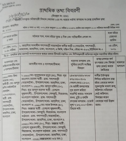 মামলায় অন্য আসামির হলেন, আব্দুল হামিদ, নয়ন ইসলাম ও মেঘা। তারা সবাই আশুলিয়ার বাতানটেকের বাসিন্দা।