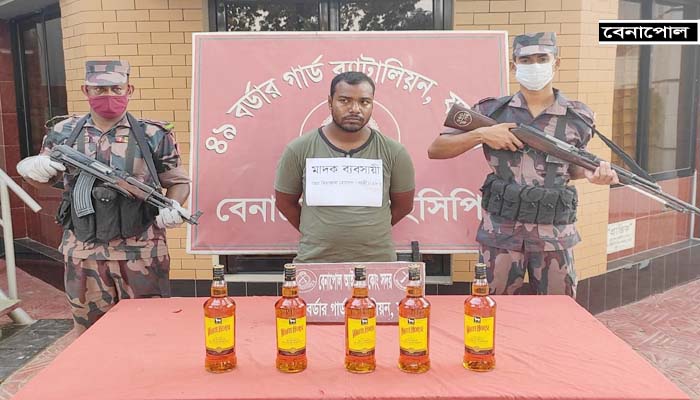 বেনাপোল বিজিবি আইসিপি’র সুবেদার মোহাম্মদ আশরাফ আলী বলেন, গোপন সংবাদের ভিত্তিতে অভিযান চালিয়ে ৫ বোতল বিদেশী মদ সহ একজনকে হাতেনাতে আটক করা হয়। আটক আসামীর বিরুদ্ধে মাদক আইনে মামলা দিয়ে বেনাপোল পোর্ট থানায় সোপর্দ করা হয়েছে।