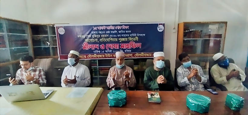 আজিজুল ইসলাম,মৌলভীবাজার।। স্বাধীনতার মহান স্থপতি জাতির পিতা বঙ্গবন্ধু শেখ মুজিবুর রহমানের ৪৬তম শাহাদাতবার্ষিকী ও জাতীয় শোক দিবস উপলক্ষে সব শহীদদের রূহের মাগফেরাত কামনায় মৌলভীবাজার টাউন কামিল মাদরাসার উদ্যোগে আলোচনা সভা, প্রতিযোগিতার পুরস্কার বিতরণী,মীলাদ ও দোয়া মাহফিল অনুষ্ঠিত হয়েছে।