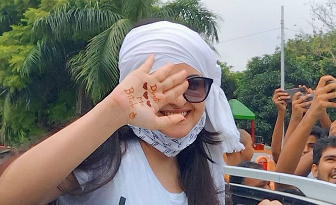 আজ বুধবার সকাল সাড়ে ৯টার দিকে কাশিমপুর কেন্দ্রীয় মহিলা কারাগার থেকে তিনি মুক্তি পান। কারাগারের গেটে এসে স্বভাবসুলভ ভঙ্গিতে হাসিমুখে জনতার সঙ্গে শুভেচ্ছা বিনিময় করেন। নিজেই স্মার্টফোন হাতে নিয়ে সেলফি তোলেন। এসময় তার হাতে মেহেদির রঙে লেখা ছিল ‘ডোন্ট লাভ মি বিচ’।