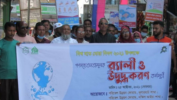 সোমবার (২৫অক্টোবর) বেলা সাড়ে ১১টায় একটি বেসরকারি উন্নয়ন সংস্থার সহযোগিতায় পরিবেশ উন্নয়ন ফোরাম দুলারহাট ও দক্ষিন আইচা শাখার যৌথ আয়োজনে চরফ্যাশন জ্যাকব টাওয়ারে অস্থায়ী ভেসিনে এ হাত ধোয়ার কর্মসূচী পালিত হয়। পরে গণ সচেতনতায় পৌর শহরে একটি র্যালী বের হয়। র্যালী শেষে পথসভার মাধ্যমে উদ্বুদ্ধকরণ সভা অনুষ্ঠিত হয়।এসময় হাত ধোয়া কর্মসূচীতে অংশ নেন বিভিন্ন এলাকা থেকে আগত অংশগ্রহনকারিরা।