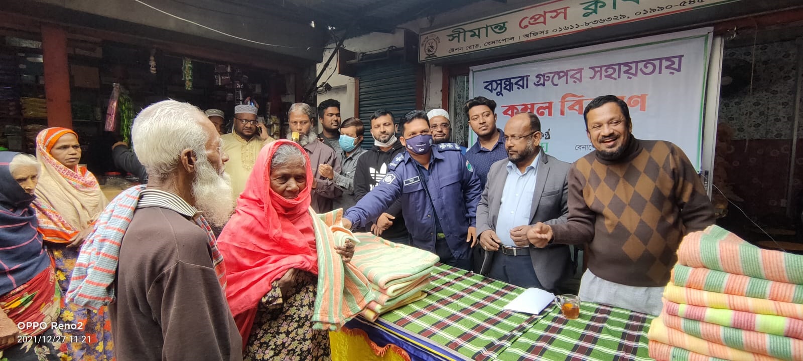 বেনাপোল রেল স্টেশন রোডের সীমান্ত প্রেস ক্লাবের সামনে কম্বল বিতরণ অনুষ্ঠানে সভাপতিত্ব করেন বেনাপোল পৌর আওয়ামীিেলগের সভাপতি আলহাজ্ব এনামুল হক মুকুল। প্রধান অতিথি হিসেবে শীতার্তদের মধ্যে কম্বল বিতরণ করেন থানার সেকেন্ড অফিসার মাসুম বিল্লাহ।