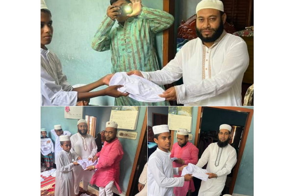 শুক্রবার (২২ এপ্রিল) বিকালে কেশবপুর উপজেলার ১১ নং হাসানপুর ইউনিয়নের বুড়িহাঁটি গ্রামে একটি এতিমখানা ও মাদ্রাসার এতিম শিশুদের মাঝে ঈদের নতুন কাপড় বিতরণ করেছে মাদ্রাসার সভাপতি।