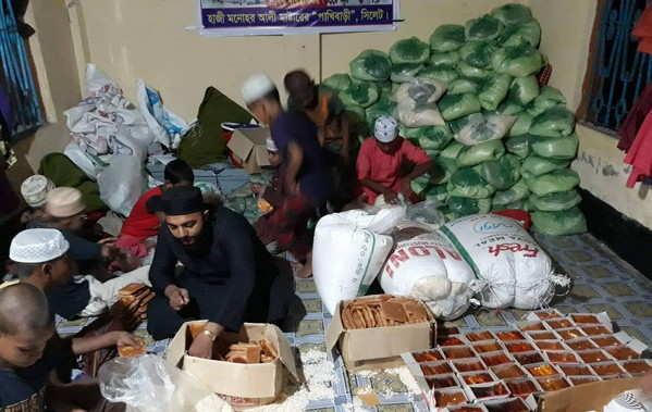 রবিবার বিকালে সিলেট ও কুড়িগ্রামের উদ্দেশ্যে পাঠানোর জন্য চিড়া, মুড়ি, পাটালি, স্যালাইন সহ ইত্যাদি শুকনা খাদ্য সামগ্রী গাড়িতে তুলে দেন তিনি।