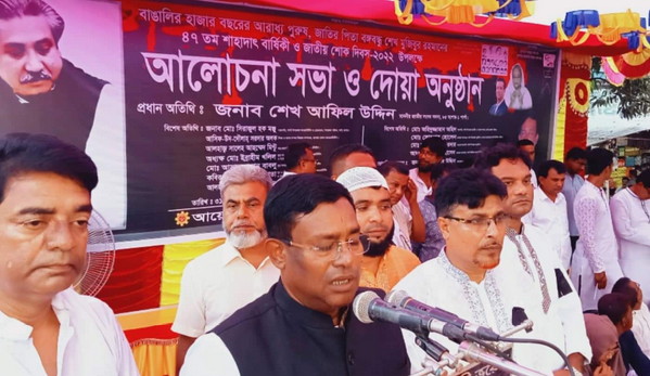 উক্ত অনুষ্ঠানে প্রধান অতিথির বক্তব্যে শেখ আফিল উদ্দিন বলেন,বঙ্গবন্ধুর হত্যার নেপথ্য কুশিলবদের মুখোশ উন্মোচিত হওয়া দরকার। বঙ্গবন্ধু হত্যার বিচার হবে না,সেটি আইন করে বন্ধ করেছেন জিয়াউর রহমান। আর খুনিদের রাষ্ট্রীয় পৃষ্ঠপোষকতা ও আশ্রয়-প্রশ্রয় দিয়েছেন জিয়া,এরশাদ ও খালেদা জিয়া।