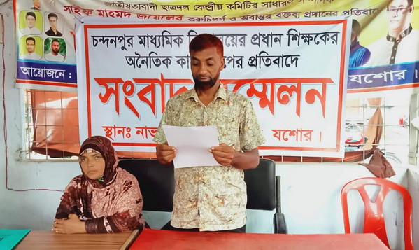 লিখিত বক্তব্যে তিনি বলেন, চন্দনপুর মাধ্যমিক বিদ্যালয়ের প্রধান শিক্ষক মো: আনছার আলী একজন জামায়াতে ইসলামের সক্রিয় কর্মী। তিনি দীর্ঘদিন ধরে বিদ্যালয়ের অর্থ আত্মসাৎ ও ছাত্রী কেলেঙ্কারির সাথে জড়িত। বিদ্যালয়ের সকল শিক্ষিকাদের সাথে দীর্ঘদিন ধরে তিনি অনৈতিক কথাবার্তা বলেন।