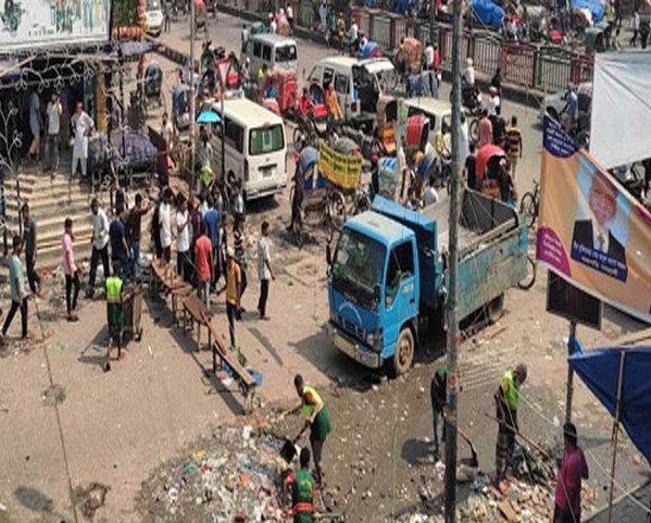 সুপার ও চন্দ্রিমার মাঝখানের রাস্তায় পুড়ে যাওয়া যাওয়া মালামাল রাখা হয়েছে। সিটি করপোরেশন ও পুলিশের সদস্যরা ব্যারিকেড দিয়ে রাস্তা পরিষ্কারের কাজ করছেন। অনেক ব্যবসায়ী তাদের দোকান থেকে পোড়া মালামাল নিচে ফেলছেন। পথশিশুরা সড়কে আবর্জনা থেকে মূল্যবান জিনিস খুঁজছে। আগুন নেভাতে ব্যবহার করা পানি এখনো মার্কেটের উপর থেকে নিচে পড়ছে।