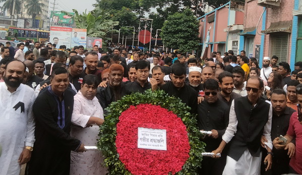 নিজস্ব প্রতিবেদক।। জাতির পিতা বঙ্গবন্ধু শেখ মুজিবুর রহমানের ৪৮তম শাহাদাতবার্ষিকী ও জাতীয় শোক দিবস উপলক্ষে আশুলিয়া থানা আওয়ামী-লীগের সভাপতি মোঃ ফারুক হাসান তুহিন বিভিন্ন নেতা কর্মীদের নিয়ে বঙ্গবন্ধুর প্রতিকৃতিতে শ্রদ্ধা নিবেদন করেছেন।