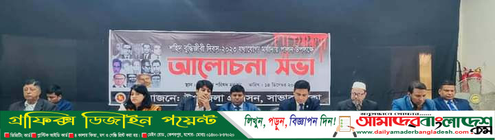 এসময় ডাঃ সায়েমুল হুদা-স্বাস্থ্য ও পরিবার পরিকল্পনা কমকর্তা, সাভার ঊপজেলা স্বাস্থ্য কমপ্লেক্স বলেন, বাঙালি জাতিকে ধ্বংস করার জন্য দেশের বুদ্ধিজীবিদের হত্যা করার পরিকল্পনা করে ঘাতকরা।তাদের পরিকল্পনা অনুয়ায়ী ১৯৭১ সালের ১৪ ই নভেম্বর নৃশংসভাবে হত্যা করে আমাদের দেশের বুদ্ধিজীবিদের।নিহত সকল শহীদ বুদ্ধি জীবিদের আত্নার মাগফেরাত কামনা করি ও শ্রদ্ধা জ্ঞাপন করছি।