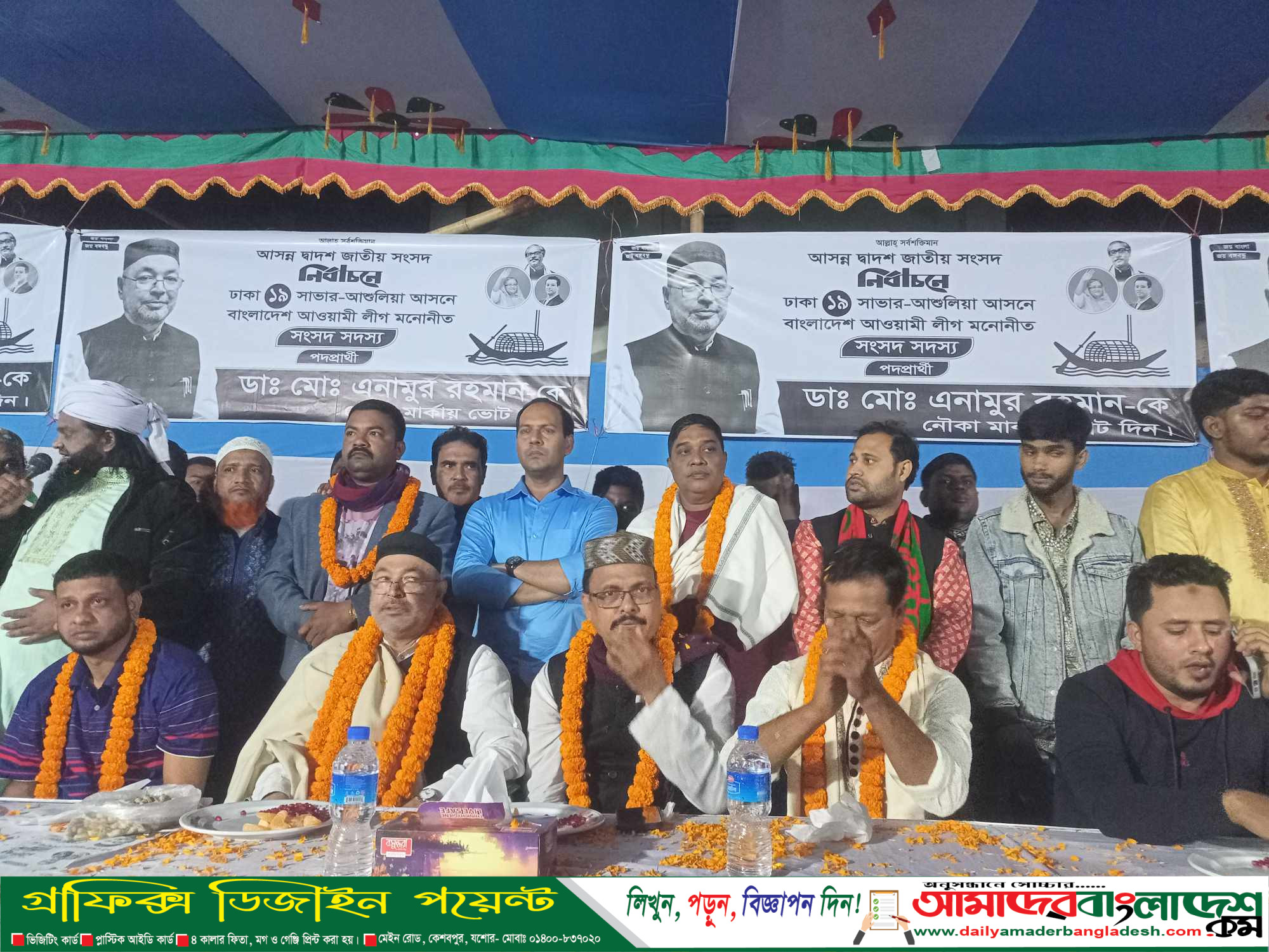 ডাঃএনামুর রহমান এমপি বলেন, আমি বিগত দশ বছর সাভার-আশুলিয়ায় যে উন্নয়ন করেছি তা আপনারা দেখেছেন।আপনারা সকলেই গর্ব করে বলতে পারেন আপনাদের আসনে একজন প্রতিমন্ত্রী রয়েছে। আমি প্রতিমন্ত্রী হওয়াতে সরকার থেকে অধিক পরিমাণ টাকা আনতে পেরছি বলেই আজ এই উন্নয়ন করতে পেরেছি।