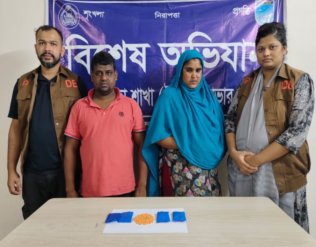 গ্রেফতারকৃত আসামি'রা হলো: (১) মোঃ মনির খাঁ (৩৮), পিতা-মৃত হবি খাঁ,মাতা-মৃত মমতাজ বেগম, সাং-লক্ষীপুর,থানা-গোপালগঞ্জ সদর,জেলা গোপালগঞ্জ,বর্তমান ঠিকানা -বক্তারপুর তিন রাস্তার মোড়, ১নং ওয়ার্ড,(ওমরের বাড়ির ভাড়াটিয়া), থানা-সাভার,জেলা-ঢাকা। ২। শ্যামলী খাতুন (৩২), স্বামী-মনির খা,পিতা-মৃত ফজর আলী, মাতা-পারভীন বেগম, গ্রাম-বক্তারপুর (তিন রাস্তার মোড়) ১ নং ওয়ার্ড,(ওমরের বাড়ির ভাড়াটিয়া), থানা-সাভার, জেলা-ঢাকা।