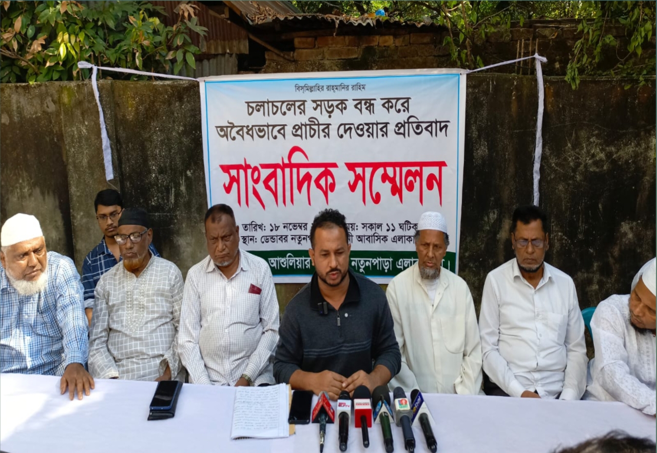 মঙ্গলবার (১৮ নভেম্বর) সকালে নিরিবিলি এলাকার ( ফাল্গুনী আবাসিক এলাকায়) সংবাদ সম্মেলন করেন এলাকাবাসী। এসময় ভুক্তভোগীরা বলেন দলিলে ৮ ফিট রাস্তা থাকার পরেও জালাল উদ্দীন নামের এক ব্যক্তি স্থানীয় প্রভাব দেখিয়ে দীর্ঘদিন ধরে বন্ধ করে রেখেছেন চলাচলের রাস্তাটি।রাস্তার উপর প্রাচীর তুলে ৮ ফিট রাস্তাকে করেছেন ২ ফিট।এ যেন দেখার কেউ নাই। জালাল উদ্দীন তার ছেলের বউয়ের প্রভাব খাঁটিয়ে রাস্তাটি দখল করছেন বলে অভিযোগ করছেন এলাকাবাসী।