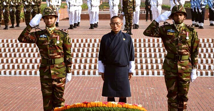 নিজস্ব প্রতিবেদক।। ভুটানের প্রধানমন্ত্রী শেরিং তোবগে দুই দিনের রাষ্ট্রীয় সফরে ঢাকায় এসে পৌঁছানোর পরপরই সাভারের জাতীয় স্মৃতিসৌধে পুষ্পস্তবক অর্পণ করে মহান মুক্তিযুদ্ধের শহীদদের প্রতি শ্রদ্ধা নিবেদন করেন।