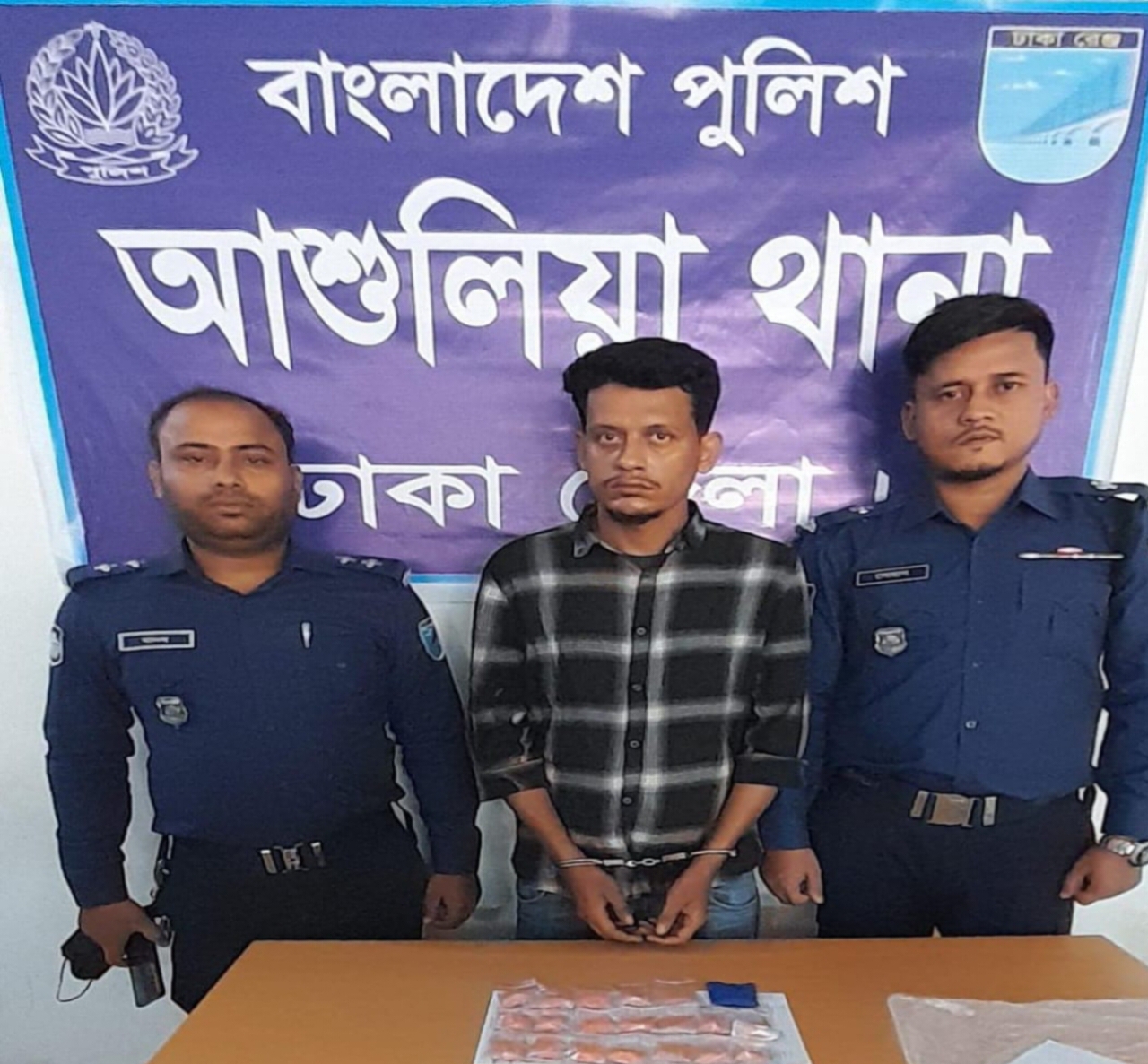 বরিবার (২৩ নভেম্বর ) সকাল ১১টা ৫৪ মিনিটের সময় এ তথ্য নিশ্চিত করেছেন আশুলিয়া থানার ভারপ্রাপ্ত কর্মকর্তা (ওসি) মোঃ আব্দুল হান্নান। এসময় তিনি বলেন গতকাল শনিবার দুপুর ২টা ৪০ মিনিটের সময় এস আই মোঃ আনোয়ার হোসেন ও তার সঙ্গীয় অফিসার ফোর্সসহ আশুলিয়া থানার কাঠগড়া পলানপাড়া রুহুল আমিন এর বাড়ির সামনে থেকে ২'হাজার পিচ ইয়াবা ট্যাবলেটসহ মোঃ শহীদুল্লাহ (৩১)কে গ্রেফতার করা হয়।