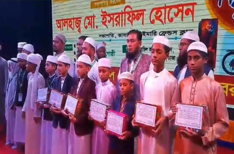 নিজস্ব প্রতিবেদক ।। আশুলিয়ায় ভাদাইল প্রাইমারি ফ্রেন্ডস ক্লাবের উদ্যোগে বৃহৎ আকারে প্রথম কোরআন তেলওয়াত প্রতিযোগিতা ও ইসলামী সাংস্কৃতিক অনুষ্ঠান অনুষ্ঠিত হয়েছে। গতকাল বৃহস্পতিবার (২৭ নভেম্বর) সকাল থেকে রাত পর্যন্ত ভাদাইল জামিয়াতুল কুরআন সুন্নাহ ইসরাফিল কমপ্লেক্সের ময়দানে অনুষ্ঠিত হলো কোরআন তেলাওয়াত প্রতিযোগিতা ও মনোজ্ঞ ইসলামী সাংস্কৃতিক প্রতিযোগিতা অনুষ্ঠিত হয়। সভাপতি আলহাজ্ব ইসরাফিল হোসেনের সভাপতিত্বে বিশেষ অতিথি হিসেবে উপস্থিত ছিলেন কলরবের জনপ্রিয় উপস্থাপক ইয়াসিন হায়দার ও সুপরিচিত কনটেন্ট ক্রিয়েটর ও বিনোদন বন্ধু মহিউদ্দিন হাসান খান।