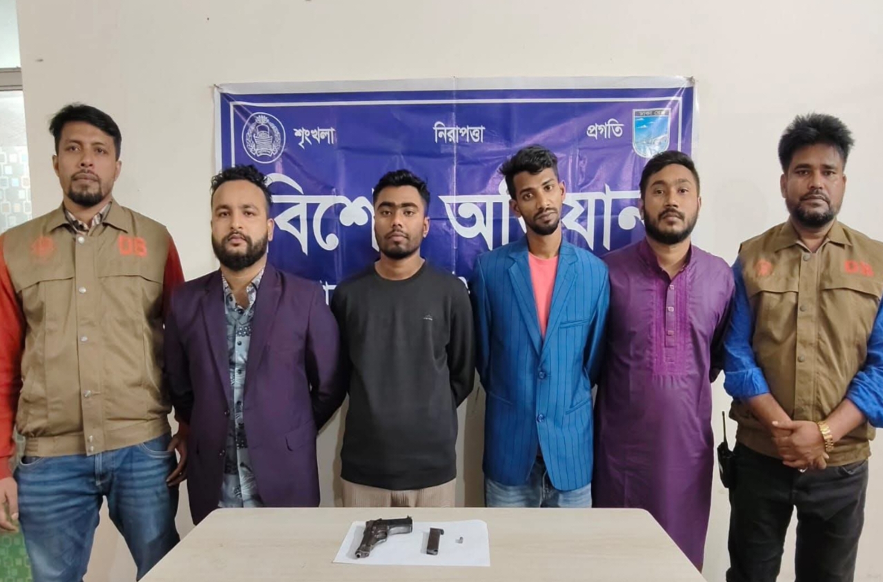 নিজস্ব প্রতিবেদক।। আশুলিয়া থানার পলাশ বাড়ি এলাকায় বিশেষ অভিযান চালিয়ে ১টি বিদেশী পিস্তলসহ ৪জন সন্ত্রাসীকে গ্রেফতার করেছে ঢাকা জেলা উত্তর গোয়েন্দা পুলিশ (ডিবি)।