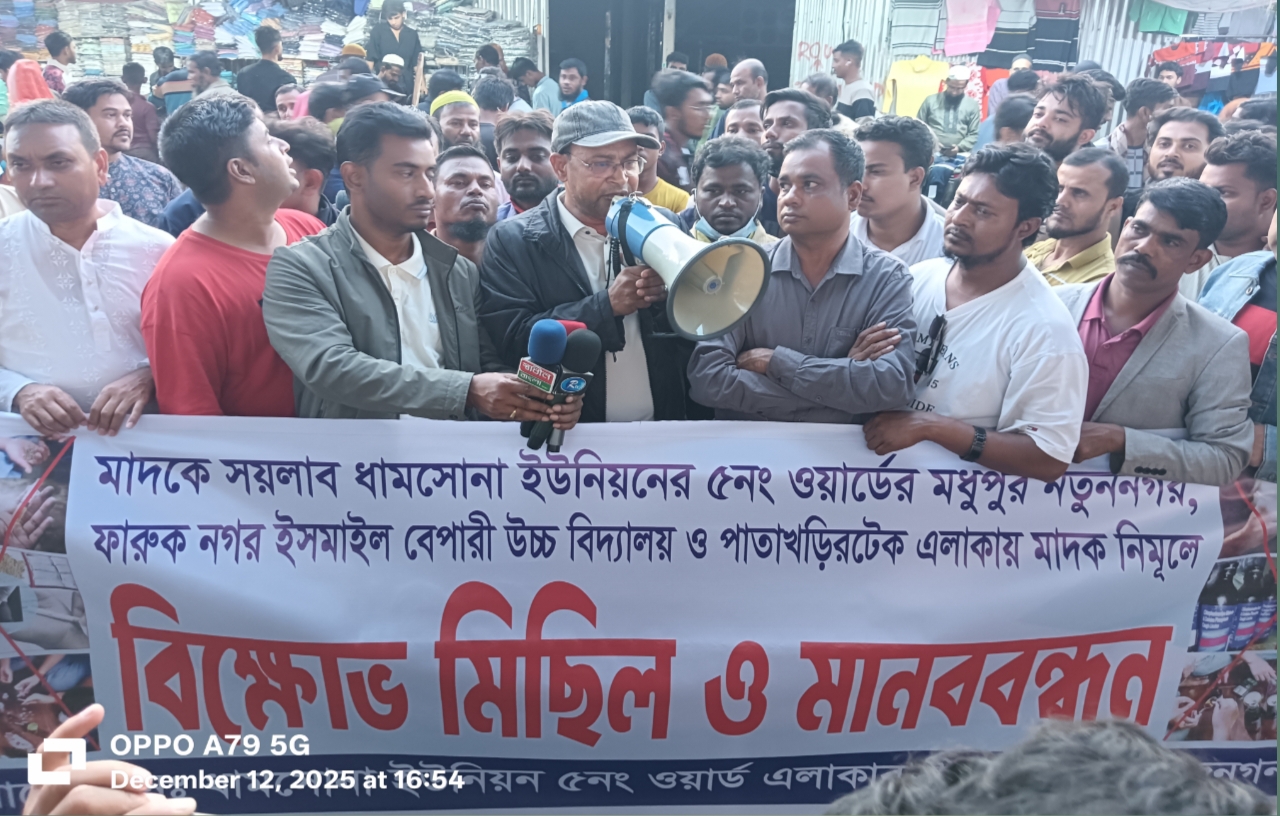 নিজস্ব সংবাদদাতা।। আশুলিয়া থানার ধামসোনা ইউনিয়নের ৫নং ওয়ার্ডের মধুপুর নতুননগর,ফারুক নগর,ইসমাইল বেপারী উচ্চ বিদ্যালয় এবং পাতাখড়িরটেক এলাকায় মাদকের ভয়াবহ বিস্তার ও সয়লাব রোধে এলাকাবাসীর বিক্ষোভ ও মানববন্ধন।
