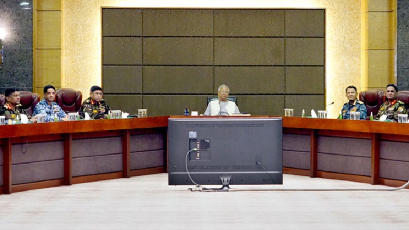সভার শুরুতে প্রধান উপদেষ্টা দেশের বিভিন্ন প্রয়োজনে সশস্ত্র বাহিনীর গৌরবোজ্জ্বল ও দায়িত্বশীল ভূমিকার কথা উল্লেখ করেন। একইসঙ্গে দীর্ঘ সময় ধরে ধৈর্য ও পেশাদারিত্বের সঙ্গে দেশের আইনশৃঙ্খলা বজায় রাখার জন্য সশস্ত্র বাহিনীর প্রতি আন্তরিক ধন্যবাদ ও কৃতজ্ঞতা প্রকাশ করেন। সভায় নির্বাচন সংশ্লিষ্ট বিভিন্ন গুরুত্বপূর্ণ ও সমসাময়িক বিষয়ে বিস্তারিত আলোচনা হয়।মতবিনিময় সভায় সেনা, নৌ ও বিমান বাহিনীর ঊর্ধ্বতন সামরিক কর্মকর্তা, সংশ্লিষ্ট আমন্ত্রিত অতিথি এবং গণমাধ্যম ব্যক্তিরা উপস্থিত ছিলেন।