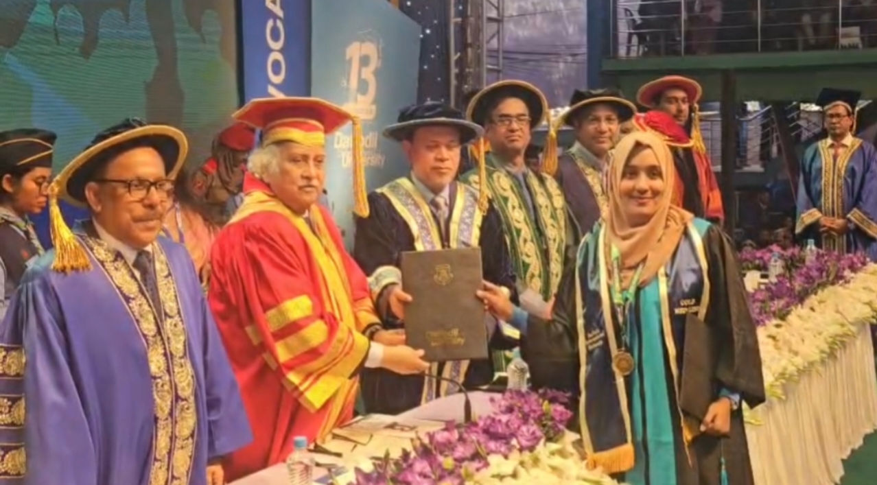 নিজস্ব প্রতিবেদক।। সাভারের বিরুলিয়া ইউনিয়নের দত্তপাড়ায় অবস্থিত ড্যাফোডিল ইন্টারন্যাশনাল ইউনিভার্সিটির নিজস্ব ক্যাম্পাসে জাঁকজমকপূর্ণ আয়োজনের মধ্য দিয়ে বিশ্ববিদ্যালয়টির ১৩তম সমাবর্তন অনুষ্ঠিত হয়েছে। বুধবার (২৮ জানুয়ারি) সকালে বিশ্ববিদ্যালয়ের মনোরম অডিটোরিয়ামে এই সমাবর্তন অনুষ্ঠান সম্পন্ন হয়।