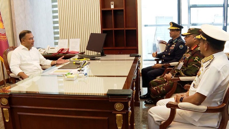 নিজস্ব প্রতিবেদক: প্রধানমন্ত্রী তারেক রহমানের সঙ্গে সৌজন্য সাক্ষাৎ করেছেন তিন বাহিনীর প্রধানরা। বৃহস্পতিবার (১৯ ফেব্রুয়ারি) সকালে এই সাক্ষাৎকার অনুষ্ঠিত হয়।