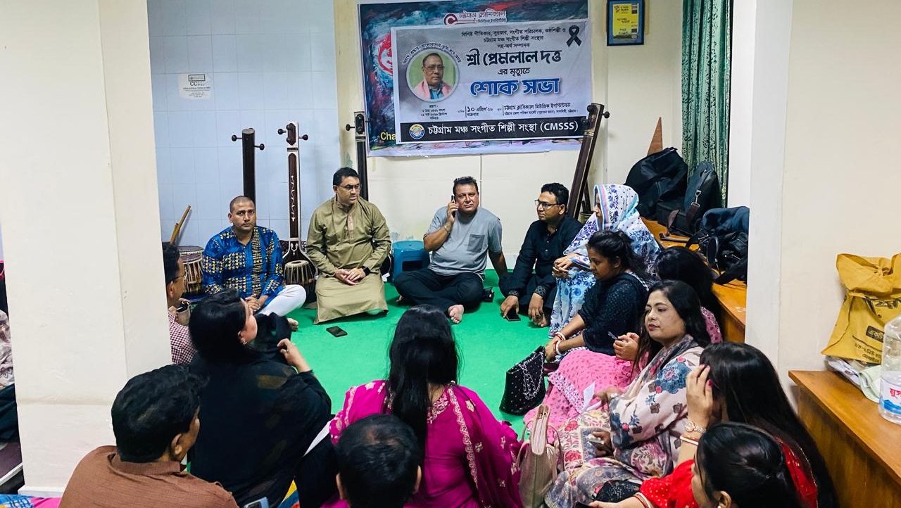 চট্টগ্রাম প্রতিনিধি: চট্টগ্রাম মঞ্চ সংগীত শিল্পী সংস্থার সহ-অর্থ সম্পাদক,বিশিষ্ট গীতিকার,সুরকার,সংগীত পরিচালক ও কন্ঠশিল্পী শ্রী প্রেমলাল দত্ত এর মৃত্যুতে সংস্থার উদ্যোগে নগরীতে এক শোক সভা সংস্থার সভাপতি আলাউদ্দিন তাহের এর সভাপতিত্বে ও সংস্থার সাধারণ সম্পাদক এ্যাডভোকেট কামরুল আযম চৌধুরী টিপু'র পরিচালনায় অনুষ্ঠিত হয়।