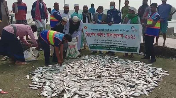 কলাপাড়ায় ৩ লাখ মিটার কারেন্ট জালসহ ১০ মন জাটকা জব্দ