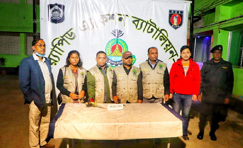 নিজস্ব প্রতিবেদক।। রাজধানীতে একটি বন্যপ্রাণী তক্ষক পাচাঁরকালে সাতজনকে গ্রেফতার করে কারাদণ্ড দিয়েছে র্যাব-৪ ভ্রাম্যমাণ আদালত। বৃহস্পতিবার (২২ জানুয়ারী) সকালে এ বিষয়টি নিশ্চিত করেছেন র্যাব-৪ এর অতিরিক্ত পুলিশ সুপার জমির উদ্দিন আহমেদ। আরো পড়ুন.....