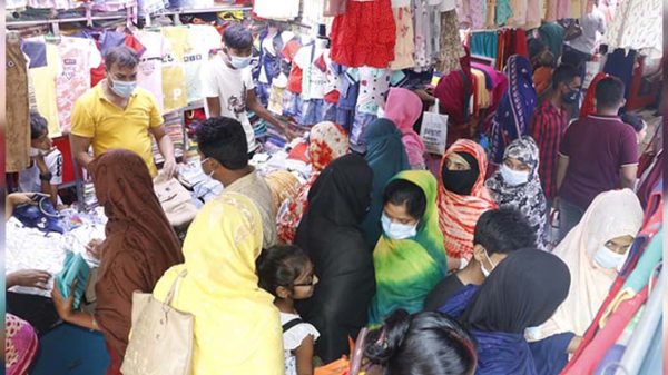 রাজশাহী।। ঈদ বাজার জমতে আর বাকি নেই। তবে বাজারগুলোতে স্বাস্থ্যবিধির বালাই নেই। যে যার মতো গাদাগাদি করে কেনা-কাটা করছেন দোকানগুলোতে। এনিয়ে মার্কেট কর্তৃপক্ষ ও ব্যবসায়ীদের কোন ধরনের সতর্কতা দেখা যায়নি। আরো পড়ুন.....