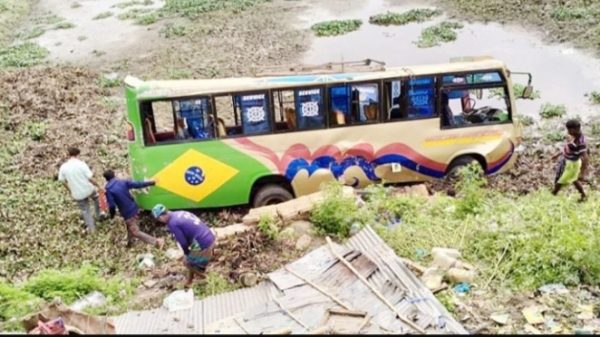 নিয়ন্ত্রন হারিয়ে বাস খাদে, অল্পের জন্য রক্ষা পেলো ৪০ যাত্রী