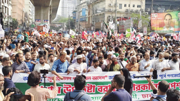 প্রধান উপদেষ্টা ড. মুহাম্মদ ইউনূসের কাছে নভেম্বরেই গণভোট আয়োজনসহ পাঁচ দফা দাবি উপস্থাপন করতে যাচ্ছে জামায়াতে ইসলামীসহ ৮টি রাজনৈতিক দল। সেই লক্ষ্যে পাঁচ দফা দাবিতে রাজধানীর পল্টন এলাকা পরিণত হয়েছে